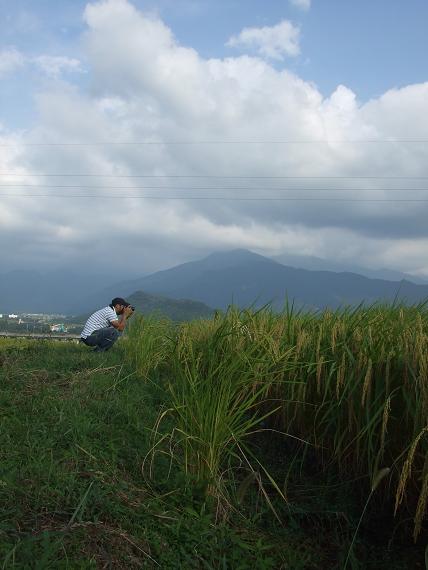 米屋の若旦那(papaさん)がカメラを構えて稲を撮る姿☆