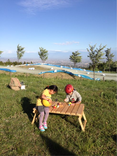 風が強かったので、途中からは我が家のテントの中で遊びの続き。