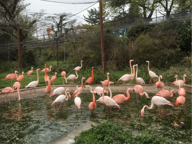 フラミンゴはちょうどお食事タイムで、