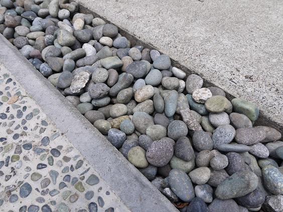 高圧洗浄機で洗い流した小石を元の場所へ戻すのです。