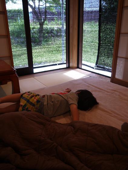 午後は、ホームセンターで買った遮光シートを和室の外に取りつけてもらいました。