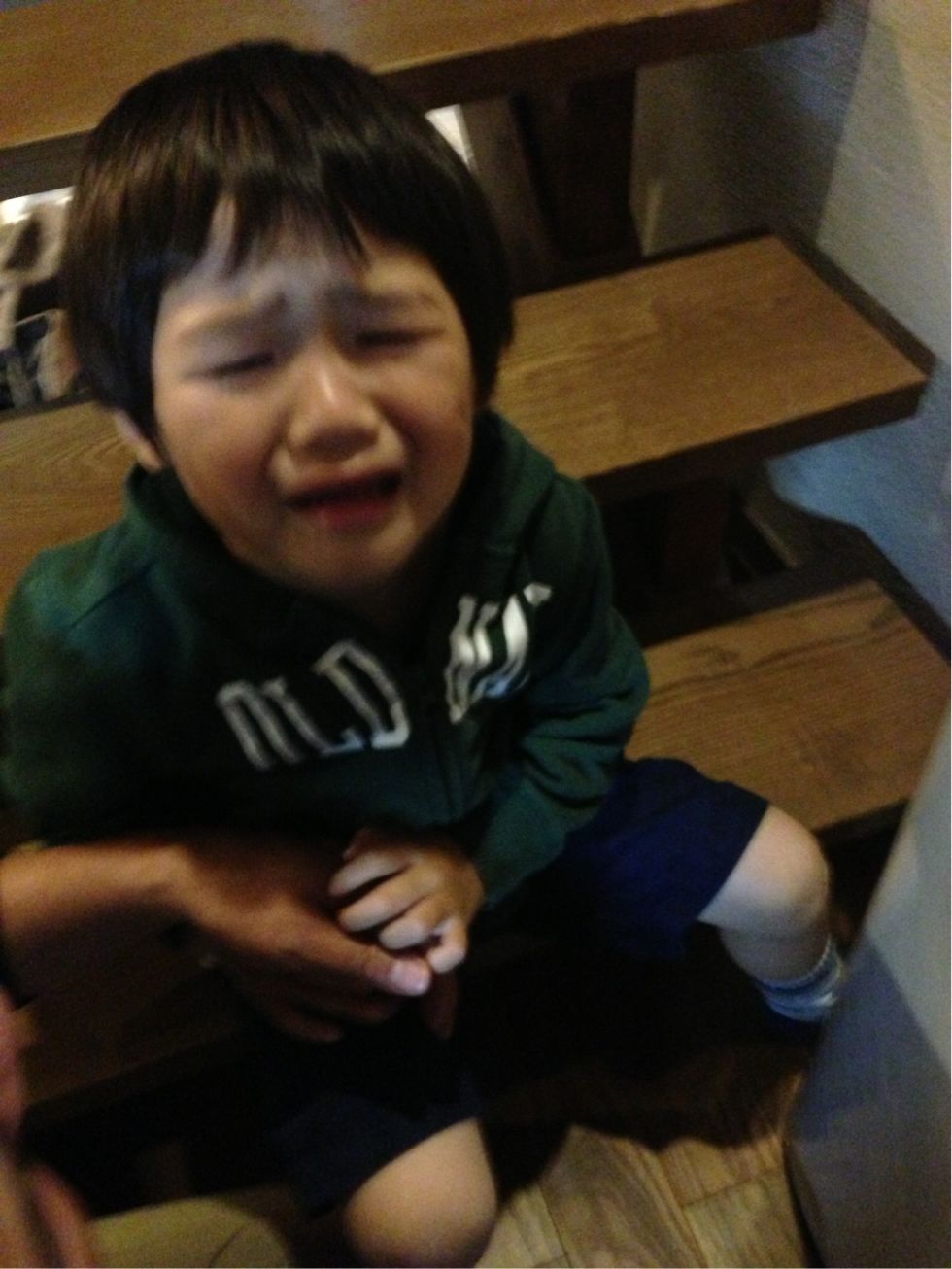 幼稚園で貼ってもらった絆創膏を剥がすのが痛い!と大騒ぎ。
