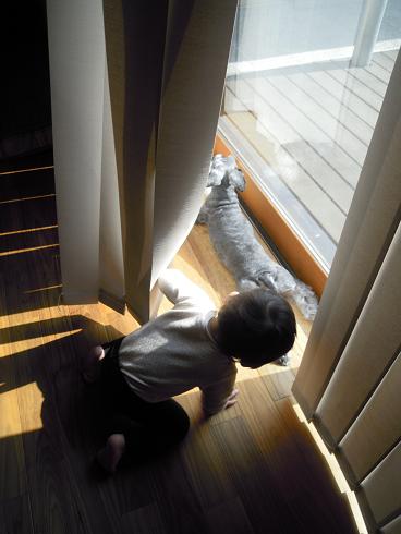 wasabiさん、カーテンの向こう側で日向ぼっこです。