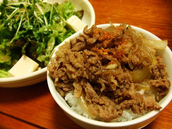 深夜0時すぎ(バイトから帰宅して)・・・夜食にと牛丼を作ってみました。