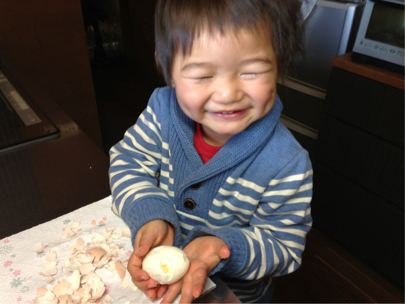黄身が見えるほどの剥き方でしたが、本人は達成感MAX♪