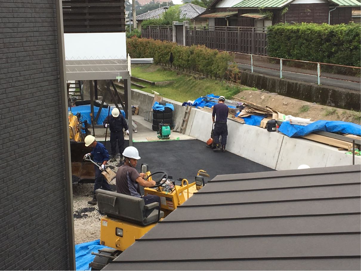 隣に家が建ち、今日は駐車場のアスファルトを。