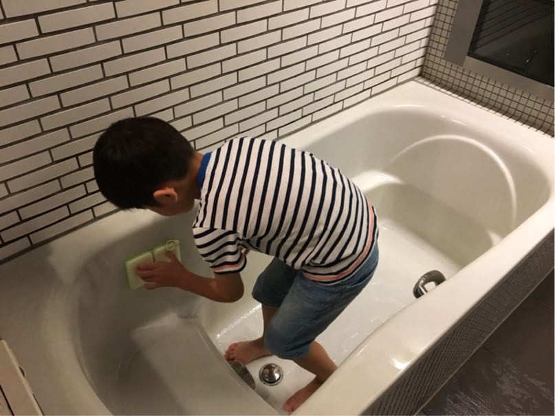 早速まずは風呂掃除を。(自主的に!)