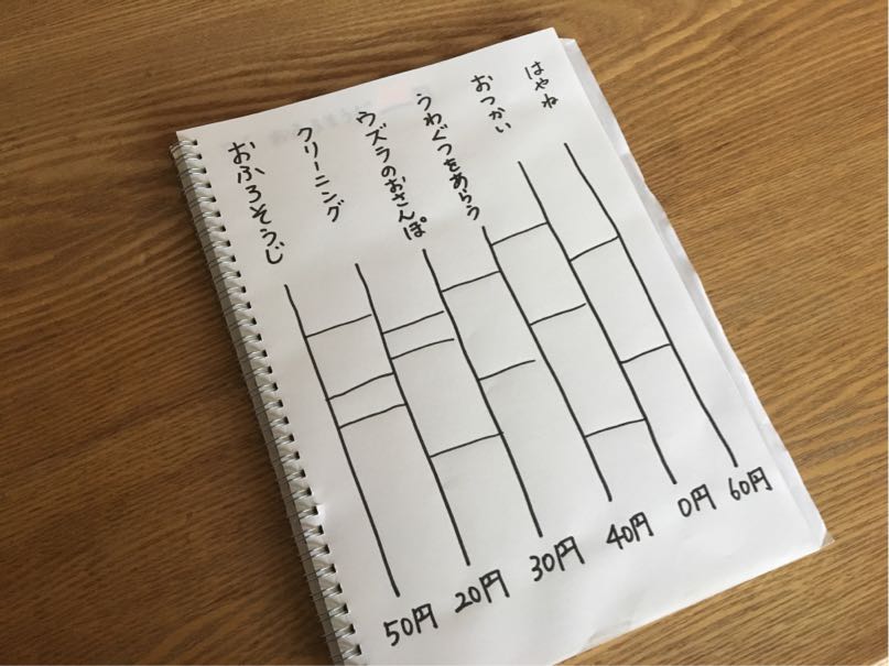 今日は「お風呂掃除」と「お料理」で90円のお給料。