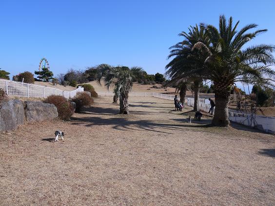 ドッグランまでの道のりは長く、遠くに見える観覧車の向こうから歩いてきました。