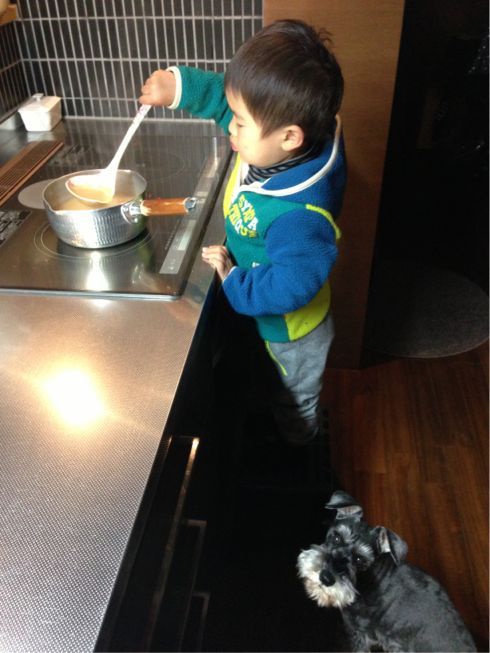 sheetaに(火を消した状態で)カレーをかき混ぜてもらっていたら、