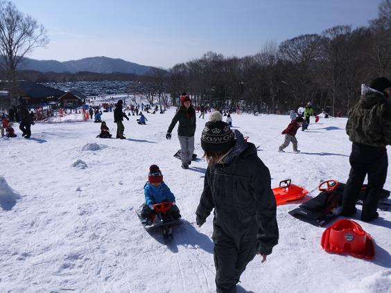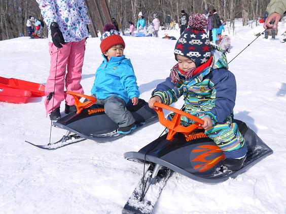 ハンドル付のソリが沢山用意されていたので、