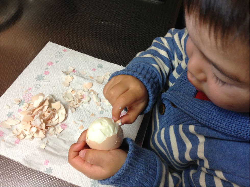 ゆで卵の殻むきをお願いしました。
