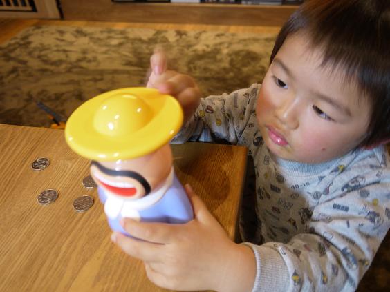 貰ったお金は、sheetaが貯金箱に入れられるように100円玉にしてあげます。