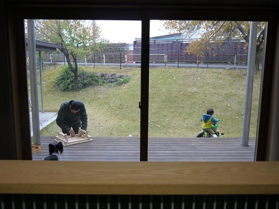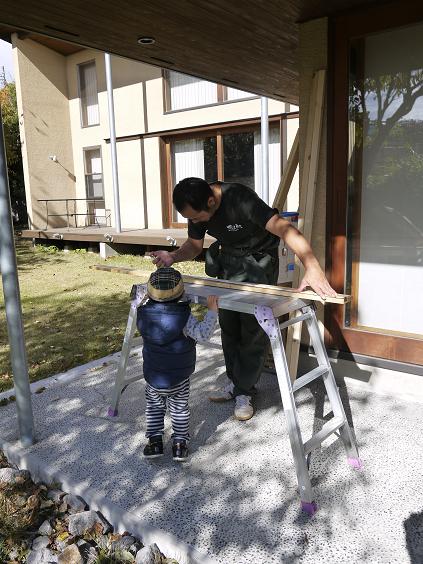 最近は、ごはんを食べ終わると庭に出てトントンギコギコやってます。