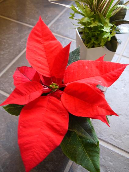 昼間、スーパーの入り口にあったポインセチアを見て、