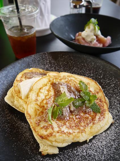 mama達はオススメの「リコッタチーズのパンケーキ」と「桃のコンポート」でティータイム♪