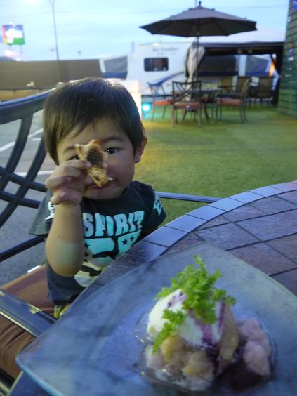 18時頃には涼しくなったので、外の席に移動してデザートを頂きました。