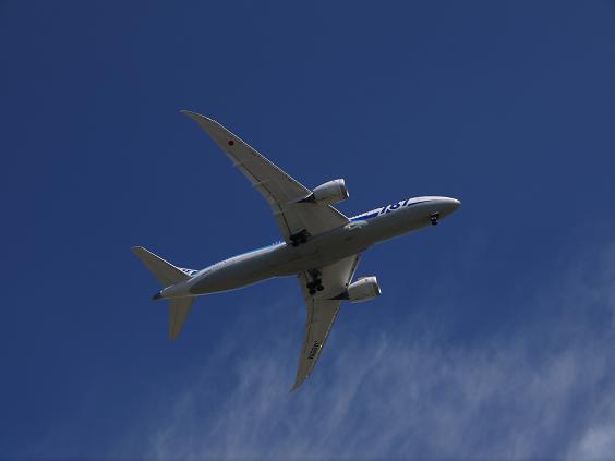 飛行機が頭の上を飛んで行くんです。