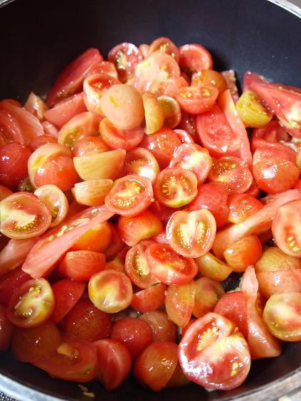 今回は、トマトソースに使うトマトの皮を全部剥いてきてくれたんだから、