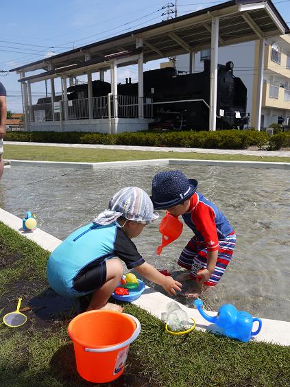 大好きなSLを見ながら、水遊び!