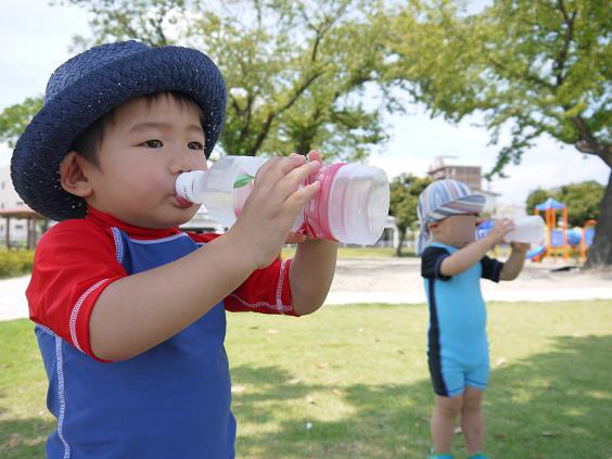 「かんぱーい!」して、ジュースをゴクゴク。