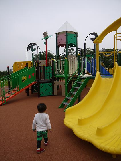 今日は滑り台が濡れていたので、周りを走りまわっていただけでしたが、