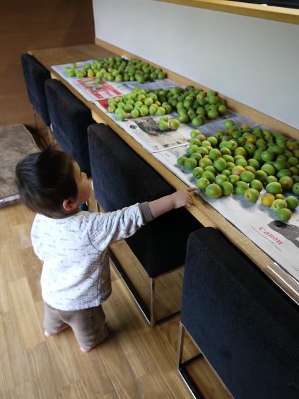 この梅は、papaさんが昨夜寝る前にもう一度拾ってくれたものだそうです。
