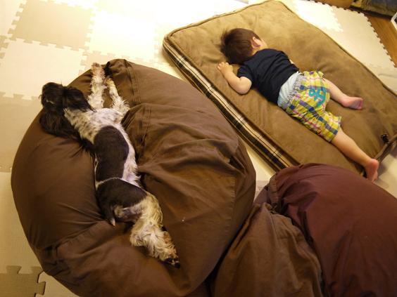 午前中、あんなに沢山遊んだというのに、何故かお昼寝をしないsheeta。