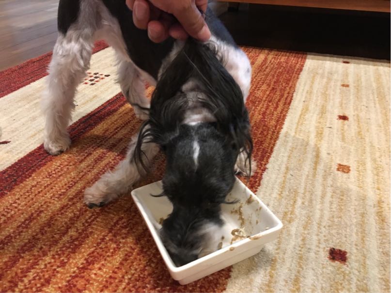 調子に乗ったmamaは、昔から食べているフードをお湯でふやかし、