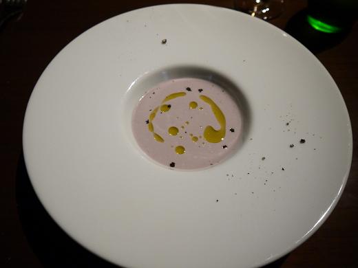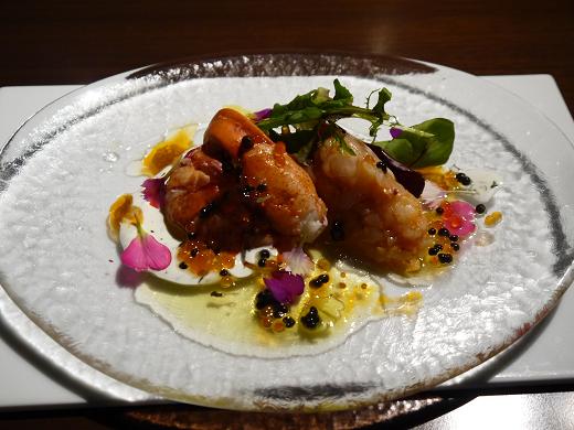 オマール海老~フォアグラ~キャビア~紫芋のスープ~サワラのポワレ~白子~