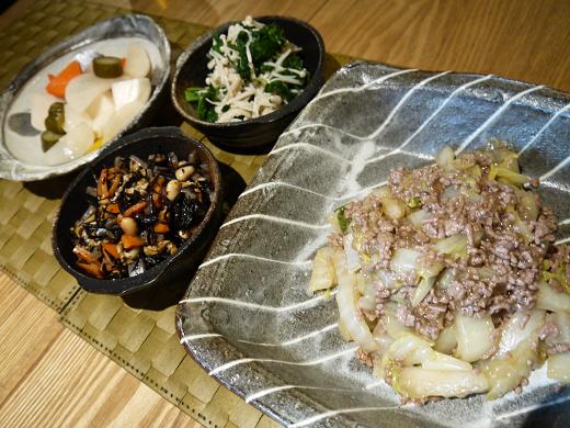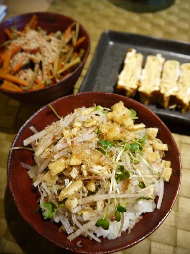 おかずは、「餃子」と「ツナとカイワレ大根のいり豆腐」