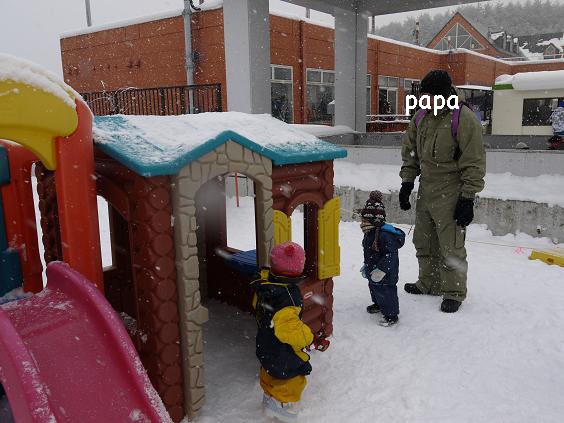 今日はまずmamaが滑っている間は、papaさんと室内で待っててもらいました。