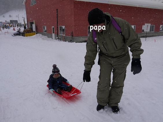 mamaとソリもしましたが、楽しんでたのはmamaだけだったかな~。(笑)