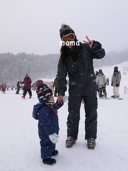 mamaは、雪が顔に当たるのが痛くて、リフト4本で断念。
