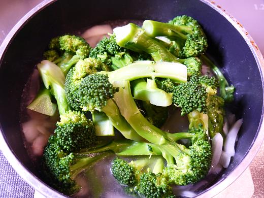 牛乳で倍の量にしたらブロッコリースープの完成です。