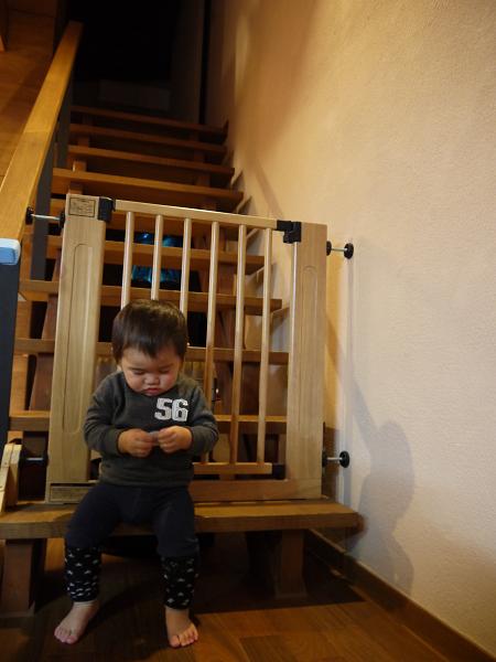 階段の一番下の段に座る息子☆