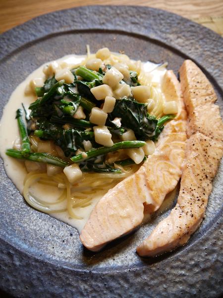 サーモンとほうれん草のパスタ☆
