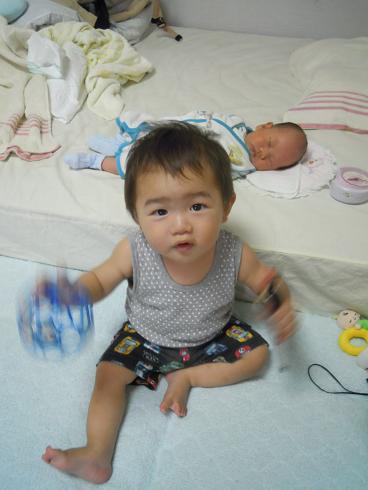 僕ちゃん・・・一人で座れるようになったなんて成長したな~。