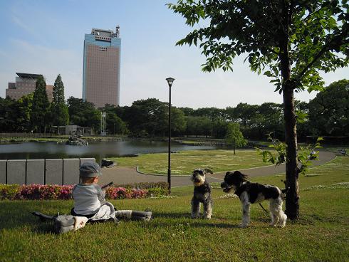 散歩で汚れたwasabiさんのシャンプーはpapaさんに任せ、