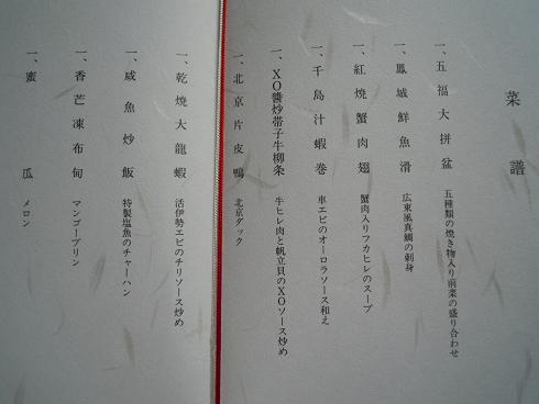 「活伊勢海老のチリソース炒め」とか「マンゴープリン」とか・・。