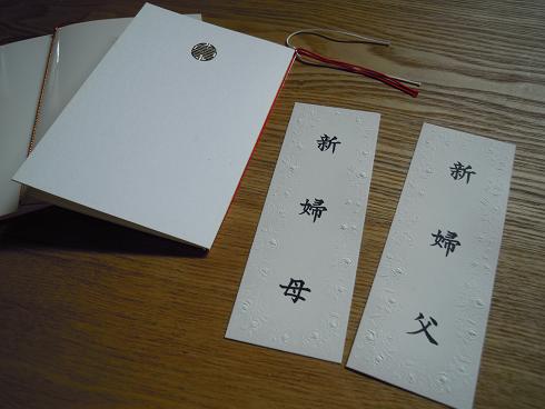 mamaとpapaさんの結婚式のときの席札とメニュー表です。