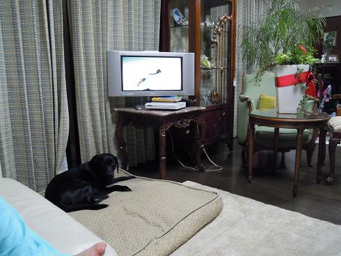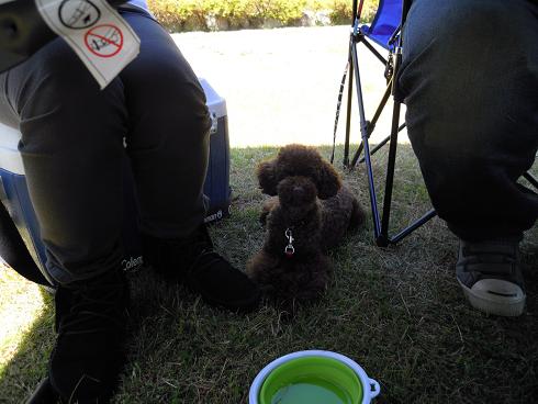 サンクはママとパパの足元でおりこうさんに伏せしてました。