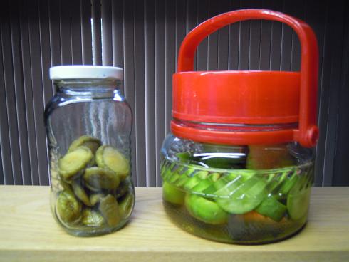 左が飲みきった梅シロップで、右が今日作った梅シロップです。