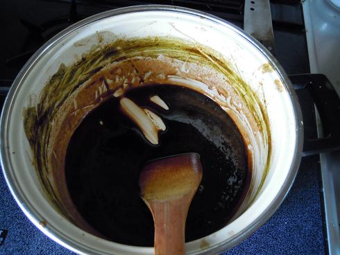 鍋底が見えるほどの量にまで減って、黒い梅エキスが完成です。