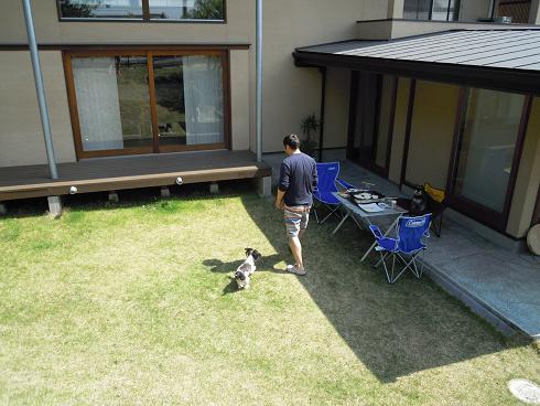 そしてpapaさんが起きてくるのを待って、庭にテーブルをセッティング!