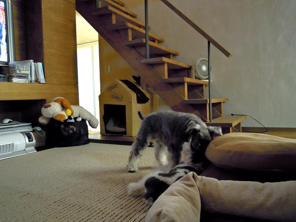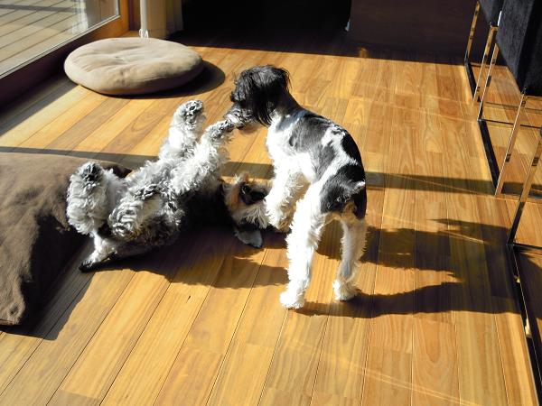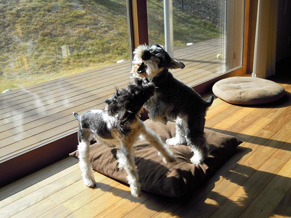 今日の気分は庭よりも部屋の中で遊んでる方が楽しいお二人さん・・・