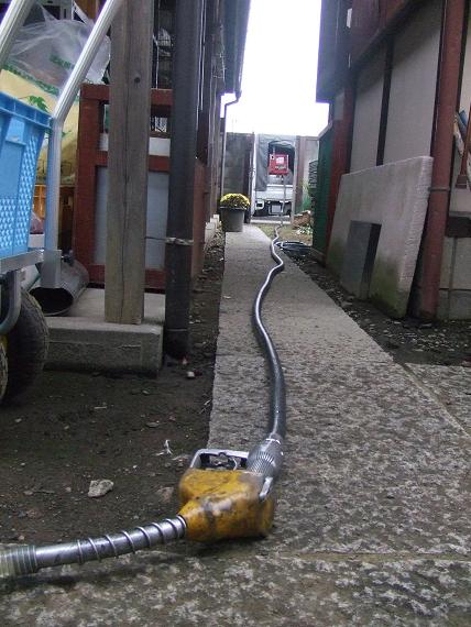ノズルの先に、ホースを繋ぐと、やっとタンクに届きます。