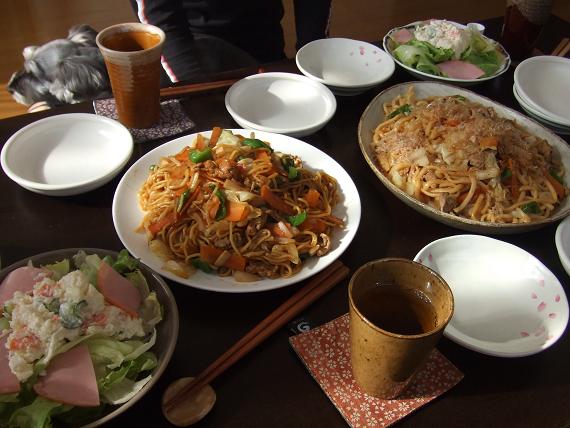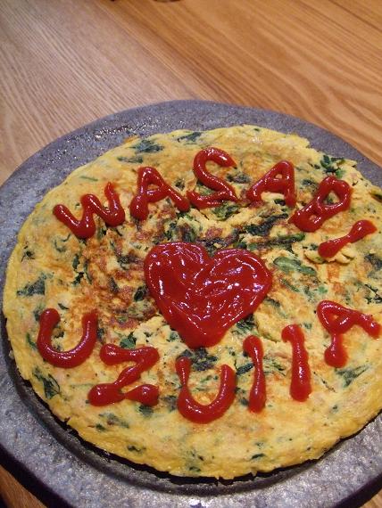 mamaの作ったオムレツとサラダも並べて、