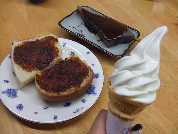 「味噌トースト」「味噌田楽」「神津牧場のソフトクリーム」を食べました。