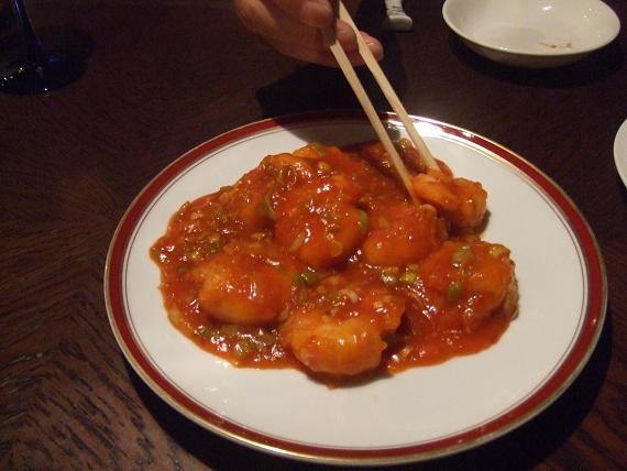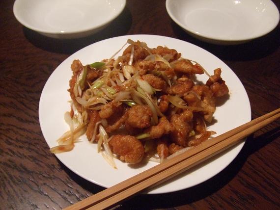「鶏皮の辛味風味」(500円)と「大海老のチリソース」(1650円)